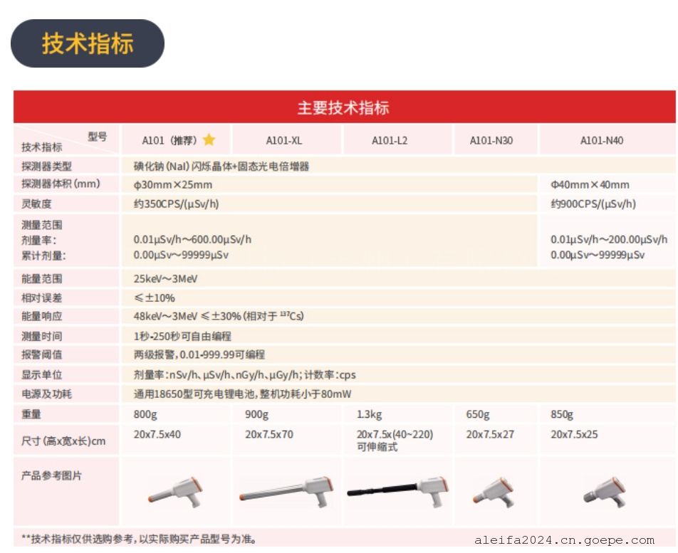 A101系列环境监测用х、γ辐射吸收剂量率仪是研发的第三代辐射剂量率仪,采用了半导体式固态倍增器(SiPM)与闪烁体组合探测器,使得仪器的可靠性、耐用性、仪器功耗等比采用传统光电倍增管的产品有了很大的提高。仪器适用于监测各种放射性工作场所γ射线辐射剂量率的通用仪器。低功耗处理器方案,具有更宽的剂量率测量范围,良好能量响应特性。该仪器广泛用于医疗、疾*、环保、冶金、石油、化工、放射性试验室、商检、工业探伤、辐射加工、矿山等各种需进行辐射环境与辐射防护检测的场合。