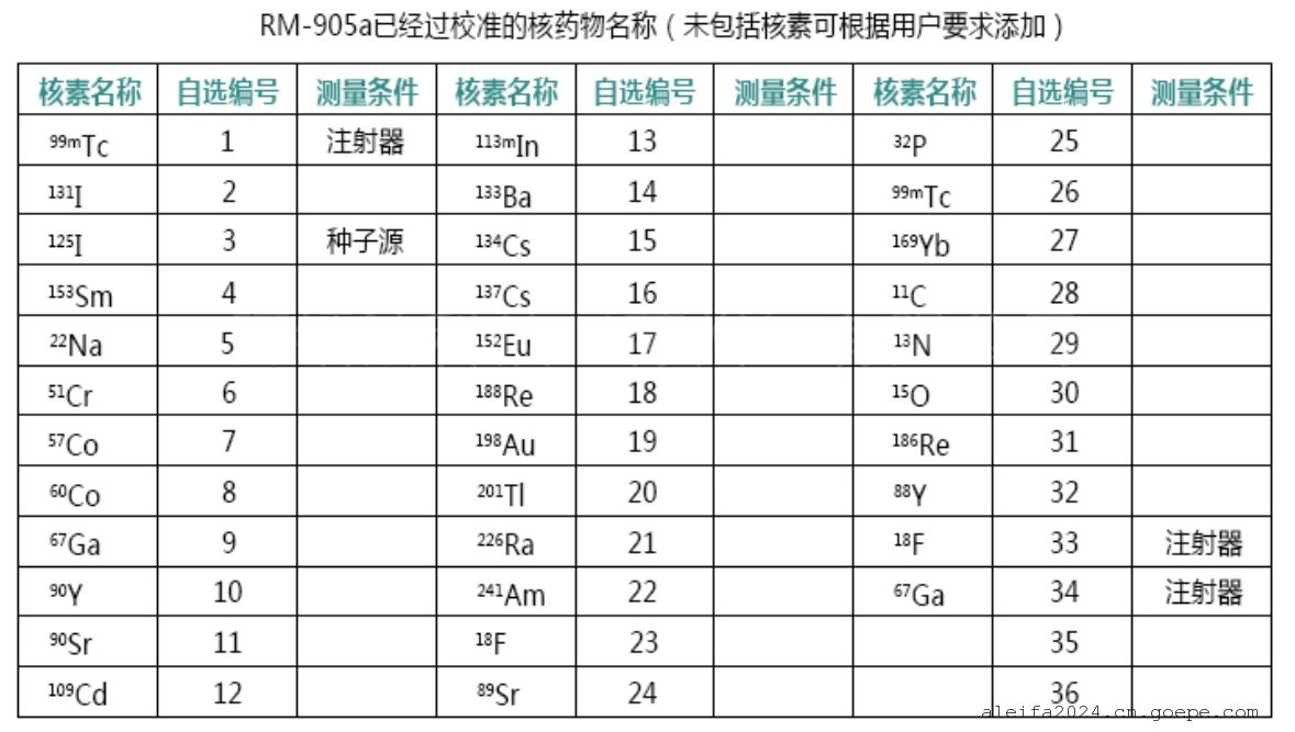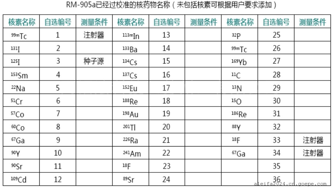 品牌:阿镭法 型号:RM-905A 测量范围:量程范围:1μCi—10Ci(99mTc) 测量对象:放射性活度计 测量精度:显示分辨:1μCi(特殊核素需要,可根据用户要求扩展显示为0 产品介绍: