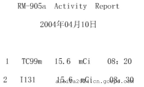 -打印机(高速长效热敏,直接连接活度计,具有不间断日历功能)。打印格式: